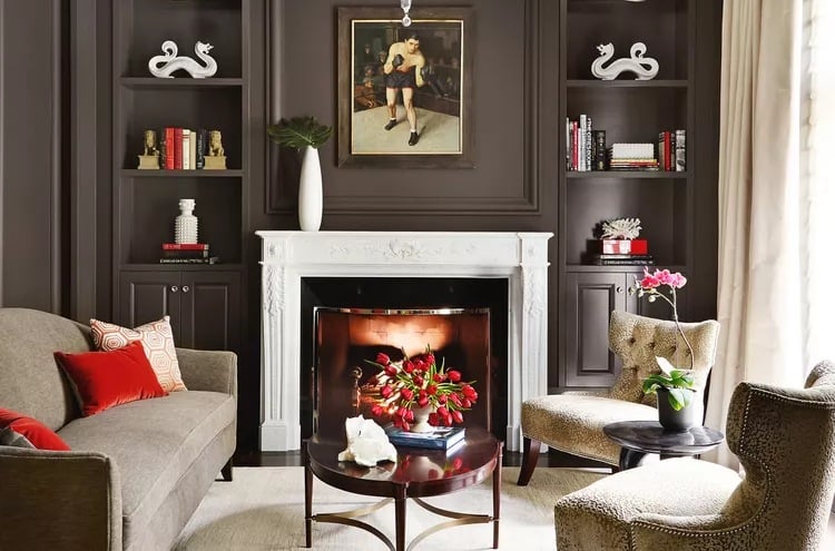 White and wood once dominated when it came to trim, especially the pieces around windows. No more: Designers are embracing rich shades of black everywhere -- from around windows and doors to shelves, walls, and more. What to look for: Seamless blankets of deep hues, such as this blanket painting of walls to moldings to windows, add a sumptuous look to spaces.